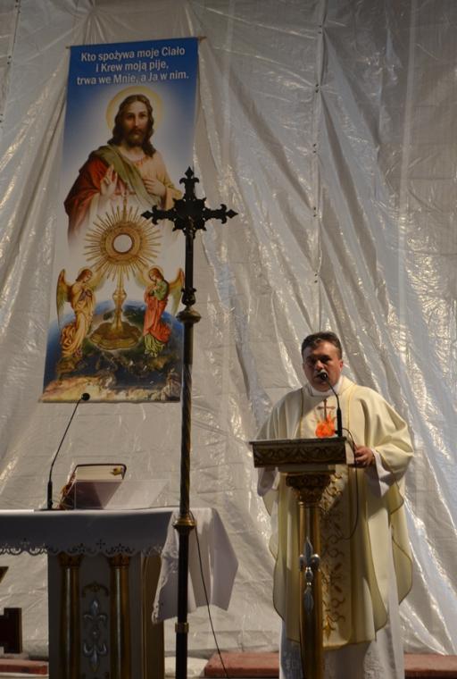 Słowa Ewangelii, które usłyszeliśmy podczas tej Eucharystii przeniosły nas myślami na Golgotę. Słowa rozważania skierował do wiernych ks. kan. Grzegorz Klapa. Przedstawił w nim rozwój kultu Serca Jezusowego. Rozpoczynając podkreślił, że ma on swoje źródło w Ewangelii. Żołnierz przebijając bok Jezusa zranił włócznią Jego serce. Kaznodzieja przywołał myśl św. Bonawentury, wskazującą, że przez ranę, która jest widoczna, możemy zobaczyć niewidoczną dla oczu ranę Jego miłości. Ksiądz kanonik Grzegorz zaakcentował, że kult Serca Jezusowego rozwijał się w Kościele powoli, ale wielcy mistycy szukali odpoczynku i schronienia właśnie w Sercu Jezusa. Zwrócił uwagę, że inspiracją do założenia zgromadzenia wizytek przez św. Franciszka Salezego był kult Serca Jezusowego. Celem zgromadzenia była adoracja Bożej miłości i oddawanie jej czci. W dalszej części homilii kaznodzieja przywołał postać Małgorzaty Marii Alacoque, której jak powiedział:„powierzono głoszenie żalów i skarg Bożego Serca na niewdzięczność człowieka. Jej przesłanie wzbudziło w społeczeństwie wielki odzew miłości i ducha wynagrodzenia”. Przywołując słowa św. Małgorzaty Marii zaakcentował, że „głównym celem nabożeństwa do Serca Jezusowego jest doprowadzenie dusz oziębłych do ukochania Jezusowej miłości”. Zaznaczył, że św. Małgorzata Maria w liście do jednej z sióstr wskazała trzy zamysły Jezusa, wyjaśniające żądanie kultu dla Jego Najświętszego Serca. Jak mogliśmy usłyszeć są nimi: przyciągnięcie zatwardziałych serc ludzkich i uchronienie ich od wiecznej zguby, doprowadzenie osób żyjących we wspólnotach do początkowej gorliwości i wzajemnej miłości przejawiającej się praktykowaniem miłości bliźniego. Ostatnim założeniem jest całkowite zapomnienie o sobie, pokora, czystość intencji, zgodność podejmowanych działań z wolą Bożą, całkowite zaufanie Bogu i umiłowanie cierpień na wzór Chrystusa. Kończąc rozważanie ksiądz kanonik Grzegorz powiedział: „Nabożeństwo do Serca Jezusowego winno być wynagradzającym sposobem zadośćuczynienia za ludzkie grzechy i niewdzięczność chrześcijan (…). Panie uczyń serca nasze według Serca Twego”.