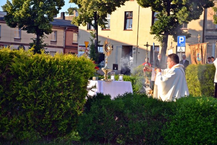 Po Mszy Świętej procesja z Najświętszym Sakramentem wyruszyła na rynek. Znajduje się tam figura Najświętszego Serca Pana Jezusa ufundowana przez mieszkańców. Została poświęcona 12. lipca 1936 roku Ks. Bpa Dymka. W czasie uroczystości poświęcenia ówczesny Burmistrz miasta Pan Franciszek Toboła odczytał akt poświęcenia się miasta Najświętszemu Sercu Pana Jezusa. 8. czerwca A.D. 2018 roku słowa aktu wybrzmiały ponownie. Odczytał je tym razem pełniący obecnie obowiązki Burmistrza Miasta i Gminy Mikstat pan Henryk Zieliński. Obecni na mikstackim rynku usłyszeli m.in. takie słowa: „Przychodzimy więc dzisiaj, by uznać całkowite panowanie Twoje nad miastem naszem. Chcemy odtąd Twojem życiem żyć, chcemy w sobie te cnoty pielęgnować, za które już tu na ziemi pokój obiecałeś(...). Panuj więc nad naszym rozumem przez prostotę wiary, panuj też przez swą miłość nad sercami naszemi, które niech całkowicie nią zapłoną. Chcemy je w Twej żarliwej miłości utrzymać przez częste przyjmowanie Komunii św. Racz, Boskie Serce, przewodzić naszym zebraniom, błogosław nasze duchowne i doczesne przedsięwzięcia, rozpraszaj nasze troski, uświęcaj nasze pociechy i łagódź nasze cierpienia". Jak aktualne pozostają nadal słowa wypowiedziane przed ponad osiemdziesięciu laty. Po odczytaniu aktu poświęcenia się miasta Najświętszemu Sercu Pana Jezusa wybrzmiały słowa pieśni: „Najświętsze Serce Boże, poświęcamy Ci Naszą Ojczyznę i nasze miasto, Nasze rodziny i nas samych; Serce Boże, przyjdź Królestwo Twoje”. W kontekście odnowionego aktu nabrały one wyjątkowego znaczenia. Następnie przy ustawionym nieopodal figury Najświętszym Sakramencie została odmówiona Litania do Najświętszego Serca Jezusowego. Następnie Ks. Kan. Krzysztof udzielił błogosławieństwa Najświętszym Sakramentem na cztery strony świata. Potem procesja powróciła do kościoła. Udział w uroczystościach ku czci Najświętszego Serca Pana Jezusa był publicznym wyznaniem wiary, świadectwem, dla tych, którzy nie dostrzegają jeszcze być może, bądź nie odkryli bogactwa miłości i wielości łask spływających na ludzkość z przebitego Serca Pana Jezusa.