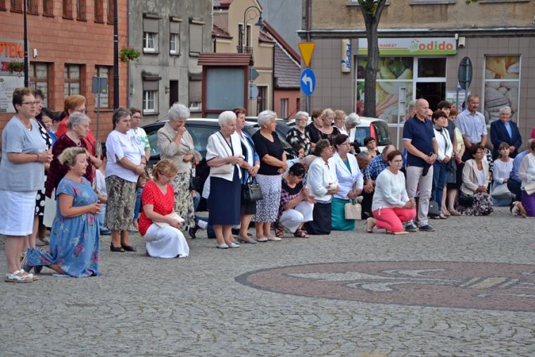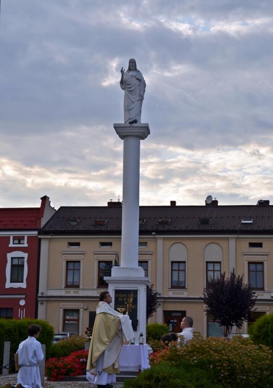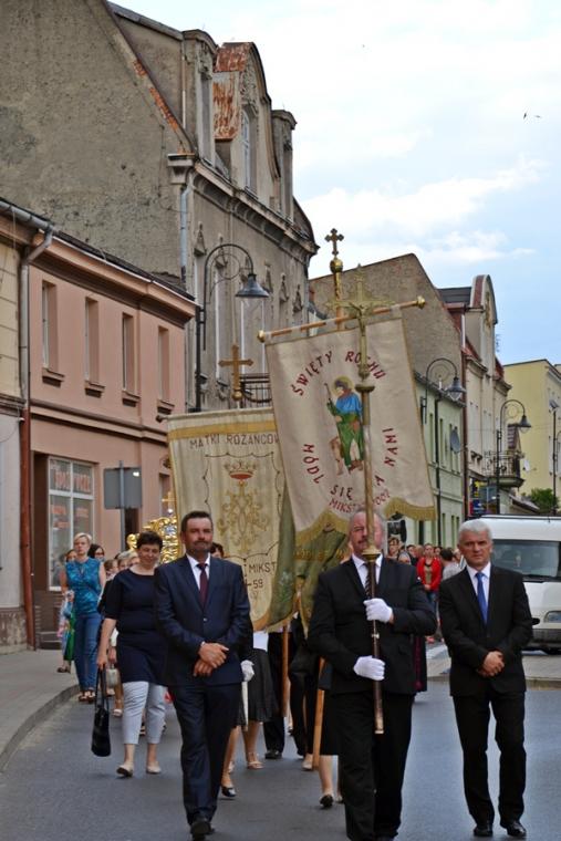 Po Mszy Świętej udaliśmy się w procesji na Rynek pod figurę Najświętszego Serca Jezusowego. Tu została odmówieniu Litania do Najświętszego Serca Pana Jezusa. Następnie ks. proboszcz odczytał Aktu poświęcenia miasta NSPJ, ten sam, który wybrzmiał na mikstackim rynku w 1936 roku. Tak jak przed laty popłynęły ku niebu słowa: „Przychodzimy więc dzisiaj, by uznać całkowite panowanie Twoje nad miastem naszem. (...). Panuj więc nad naszym rozumem przez prostotę wiary, panuj też przez swa miłość nad sercami naszemi, które niech całkowicie nią zapłoną. Chcemy je w Twej żarliwej miłości utrzymać przez częste przyjmowanie Komunii św. Racz, Boskie Serce, (...) błogosław nasze duchowne i doczesne przedsięwzięcia, rozpraszaj nasze troski, uświęcaj nasze pociechy i łagódź nasze cierpienia”. Po odnowieniu aktu ks. kan. Krzysztof udzielił błogosławieństwa Najświętszym Sakramentem na cztery strony świata.