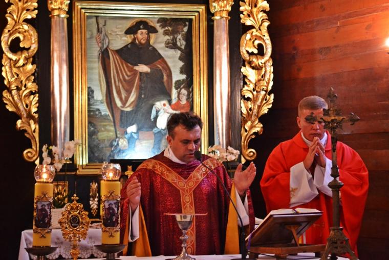 Rozpoczynając homilię celebrans wyraził słowa uznania dla zaangażowania ks. kan. Krzysztofa Ordziniaka za zaangażowanie w rozwój kultu św. Rocha oraz ożywianie ducha wiary w parafii. Podkreślił, że postawa ta nawiązuje do słów Ewangelii- kapłan traci swoje życie, aby mieć życie wieczne. Następnie przyznał, że stajemy przed trudnym wyzwaniem polaczenia rozważania o dwóch świętych: św. Wawrzyńcu i św. Rochu. Podkreślił, że to co ich łączyło to dążenie do świętości, męczeństwo, niezłomna wiara i oddanie sprawom Bożym. Nawiązując do słów błogosławieństwa podkreślił, że tylko Bóg wie ile osób jest prześladowanych za wiarę, ile w jej obronie oddało życie, ile jest w stanie dla Niego poświęcić wszystko, by ukazać światu rzeczywistość wynikającą z życia wiarą. W dalszej części homilii ks. Witold przywołał statystyki ukazujące skalę zjawiska prześladowania za wiarę w czasach współczesnych. Nawiązując do postaci św. Wawrzyńca podkreślił, że decydując się na życie wiarą powinniśmy być przygotowani na cierpienia, wyszydzanie za gesty wiary, pobożności. Kontynuując kapłan powiedział: Prześladowany dla Kościoła, dla Chrystusa to ubogi dla świata, ale bogaty dla Stwórcy”. Zaakcentował, że tym którzy nie znają Boga, albo znają, ale nie chcą żyć zgodnie z jego nauką wydaje się, że bogactwa tego świata nigdy nie przeminą . Podkreślił, że tym czego człowiek nie powinien nigdy stracić jest wiara w Boga.