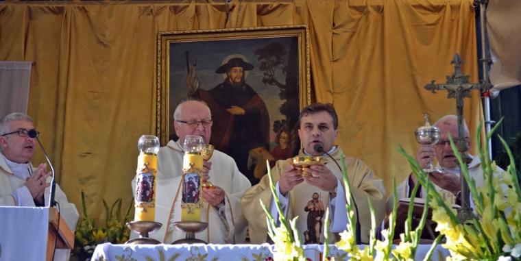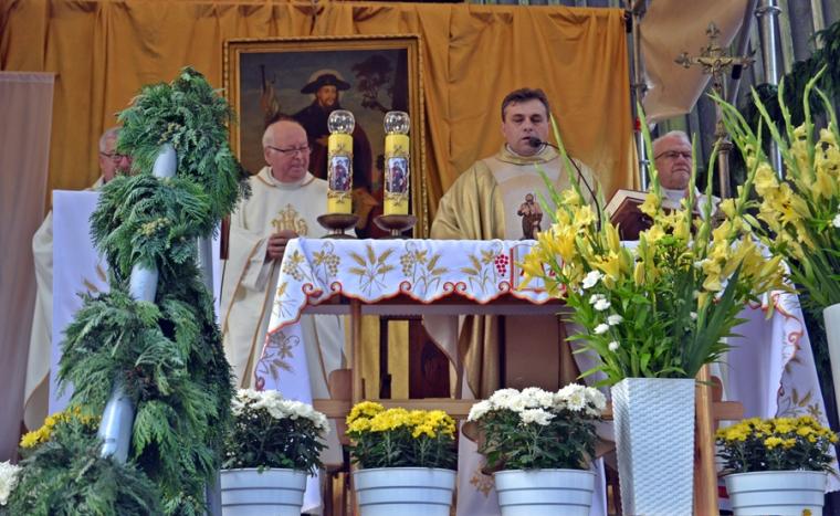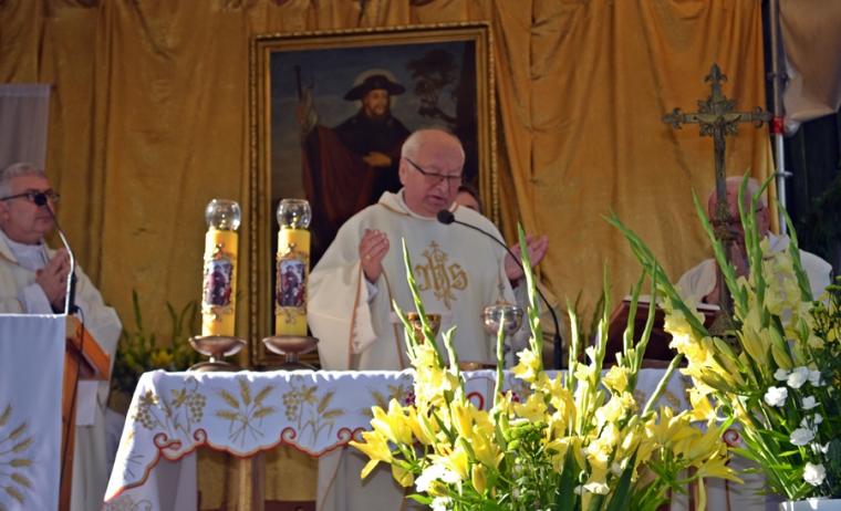 16 sierpnia w Diecezjalnym Sanktuarium Świętego Rocha w Mikstacie odbyły się uroczystości odpustowe połączone z obrzędem błogosławieństwa zwierząt. Poprzedza go sprawowana przy ołtarzu polowym o godz.8:00 Msza św. w intencji gospodarzy oraz o Boże błogosławieństwo w pracy i inwentarzu. To właśnie wiara sprawia, że od pokoleń w dniu wspomnienia św. Rocha, 16 sierpnia Cmentarne Wzgórze wypełnione jest wiernymi. Mszy świętej koncelebrowanej przewodniczył kustosz sanktuarium ks. kan. Krzysztof Ordziniak. Współcelebransami byli ks. kan. Jerzy Rasiak, ks. kan. Andrzej Grabański i ks. Ryszard Zieliński. Podczas tej Eucharystii wybrzmiały słowa błogosławieństw. W homilii ks. kustosz podkreślił, że słowa „ błogosławieni miłosierni, albowiem oni miłosierdzia dostąpią” stanowią w pewnym sensie motto odpustowej liturgii. Podkreślił, że żył nim patron naszego sanktuarium. Zwrócił uwagę, że Kościół wspominając postacie świętych i błogosławionych daje nam wzory do naśladowania. Kontynuując ks. kan. Krzysztof Ordziniak przypomniał postać św. Rocha akcentując jego postawę miłosierdzia. Przypomniał, że podczas nowenny przygotowującej nas do uroczystości odpustowych pochylaliśmy się dzięki słowu głoszonemu przez kapłanów mikstackiego dekanatu właśnie nad błogosławieństwami. Ks. kustosz podkreślił, że uroczystość odpustowa ukazuje nam perspektywę życia na przykładzie św. Rocha, motywując do życia godnego ucznia Chrystusa. Kończąc homili zachęcał: „Bądźmy ludźmi wspaniałomyślnymi, otwartymi, nie zatrzymującymi się na tym co tylko nam może służyć, co jest nam wygodne”. We mszy św. uczestniczyło dwóch chłopców przebranych za św. Rocha. Specyficzna była atmosfera tej mszy świętej. Do uszu osób w niej uczestniczących dochodziło z oddali szczekanie psów, rżenie koni. Był to znak, że już przed bramą prowadzącą do sanktuarium gromadzą się właściciele ze swoimi zwierzątkami. Nikomu chyba w tym dniu nie przeszkadzały te odgłosy, nikt nie narzekał, że trudno się było skupić podczas Eucharystii. Święty Roch przecież jest opiekunem zwierząt. Po zakończonej Eucharystii odbył się obrzęd błogosławieństwa zwierząt. Przewodniczył mu ks. biskup Łukasz Buzun.Wielka jest siła wiary mikstackich parafian, ale i tradycji. Ma ona ponad trzysta lat…