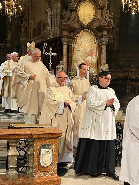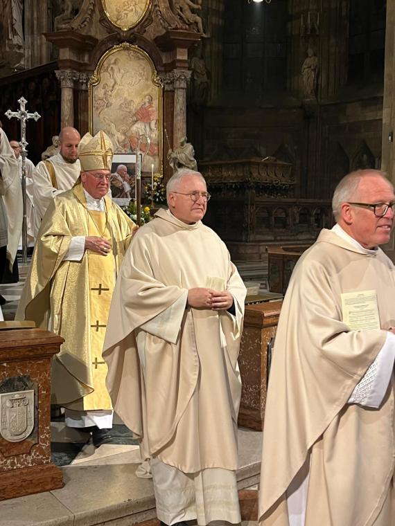 "Wszyscy tu dzisiaj zgromadzeni jesteście wielbicielami Jana Pawła II, papieża, który beatyfikował i kanonizował więcej osób niż ktokolwiek przed nim” – zwrócił się bp Schwarz do wiernych przybyłych do katedry z całego Wiednia. Nie zabrakło także Polaków, licznie reprezentowanych przez wspólnoty i organizacje polskie oraz osoby prywatne. Alois Schwarz celebrował Mszę św. w ornacie, który Karol Wojtyła miał na sobie podczas sprawowania liturgii w katedrze św. Szczepana w 1983 r.