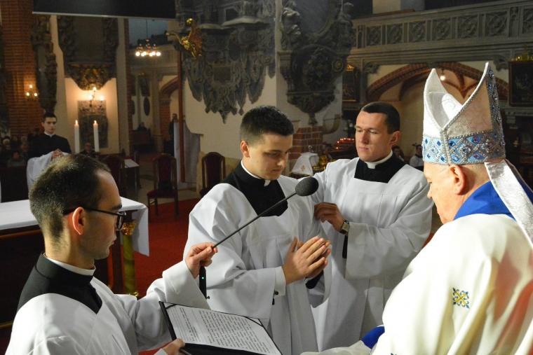 – Sutanna to ważny znak na drodze ku kapłaństwu – powiedział rektor seminarium ks. Piotr Kot. – To szczególny znak przynależności do Chrystusa. Natomiast biała komża, którą nakłada biskup nawiązuje do szaty chrzcielnej, jest znakiem nowego człowieka, stworzonego na obraz i podobieństwo Boga i odkupionego mocą ofiary Chrystusa – dodał ks. Rektor.