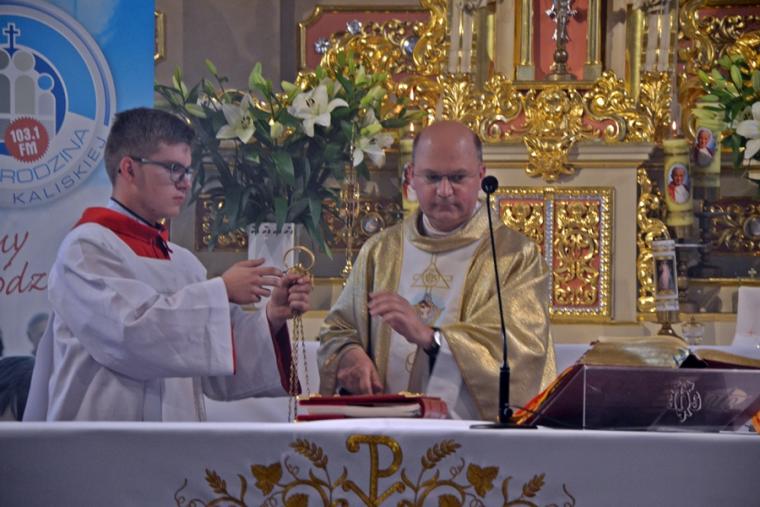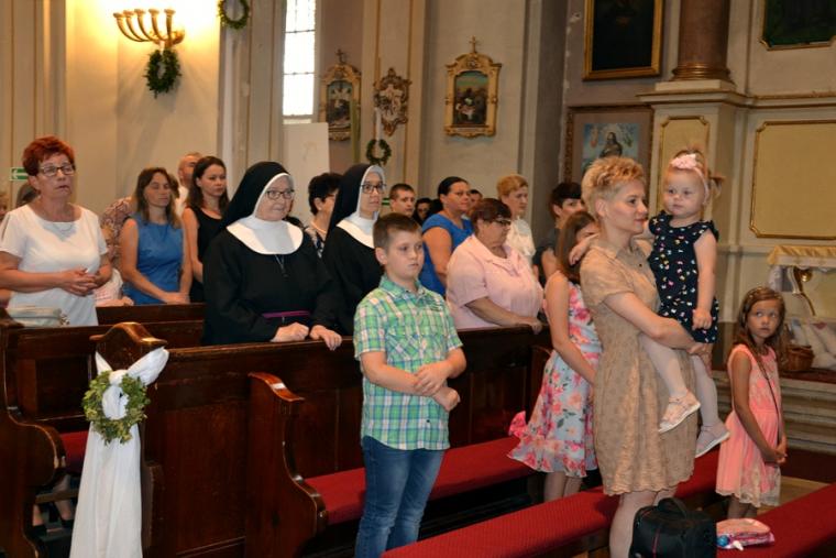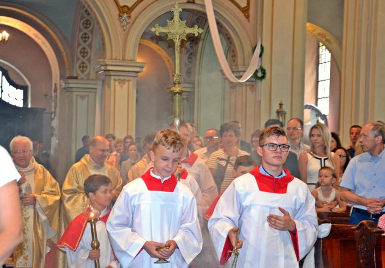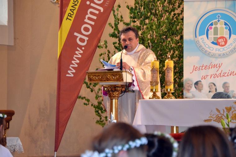 Bogata w wydarzenia była w mikstackiej parafii niedziela 16 czerwca . W tym dniu w całym Kościele obchodzona była uroczystość Trójcy Przenajświętszej. Dla naszej wspólnoty był to dzień wyjątkowy, dzień odpustu, bo od wieków parafii patronuje Trójca Święta. Uroczystej sumie odpustowej odprawionej o godz. 11:00 przewodniczył w tym roku ks. Andrzej Wojciechowski, proboszcz parafii pw. Świętego Michała Archanioła w Czempiniu. W czasie sumy odpustowej zakończenie „ Białego Tygodnia” przeżywały dzieci, które w uroczystość Zesłania Ducha Świętego pierwszy raz w sposób pełny uczestniczyły we mszy świętej, natomiast uczniowie klasy czwartej wspominali rocznicę swojej I Komunii Świętej. Wraz z księdzem Andrzejem Wojciechowskim, stanęli ks. kan. Krzysztof Ordziniak oraz ks. kan. Zbigniew Mielcarek, który czterdzieści dwa lata temu w uroczystość Trójcy Świętej sprawował w mikstackiej farze mszę świętą prymicyjną. Na początku mszy świętej ksiądz proboszcz przedstawił przewodniczącego koncelebrze księdza Andrzeja. Podkreślił, że jest następcą ks. Franciszka Ksawerego Ruszczyńskiego w Czempiniu, w parafii do której posłany został budowniczy naszej fary w dwa lata po jej konsekracji. W Czempiniu w parafii pw. Świętego Michała Archanioła sprawował posługę w latach 1920-1961. Ks. kan. Krzysztof zaznaczył, że ks. Andrzej Wojciechowski jest kolegą kursowym syna naszej parafii ks. Michała, a więc niedawno obchodził 25-lecie kapłaństwa. Homilię podczas uroczystej sumy wygłosił przewodniczący koncelebrze ks. Andrzej. Można w niej wyodrębnić dwie części. W pierwszej kaznodzieja nawiązując do słów Ewangelii zachęcał byśmy dziękowali Bogu za Bożego Ducha, który przypomina nam prawdę. Podkreślił, że ta prawda jest przekazywana od dwóch tysięcy lat, głoszona w naszych parafiach i prowadzi nas do zbawienia. Ks. Andrzej zaakcentował, że w uroczystość Trójcy Przenajświętszej dziękujemy za Boga Ojca, który stworzył świat, za Syna Bożego, który odkupił świat, wybawił nas od śmierci i grzechu, dziękujemy za Ducha Świętego, który nas prowadzi, oświeca nas, byśmy nie zeszli z Bożych dróg. Kaznodzieja nawiązał do medalionu Trójcy Przenajświętszej znajdującego się w kościele pw. Świętego Michała Archanioła w Czempiniu podkreślił, że cała Trójca Święta przedstawiona jest jako wspólne działanie Boga dla naszego zbawienia.