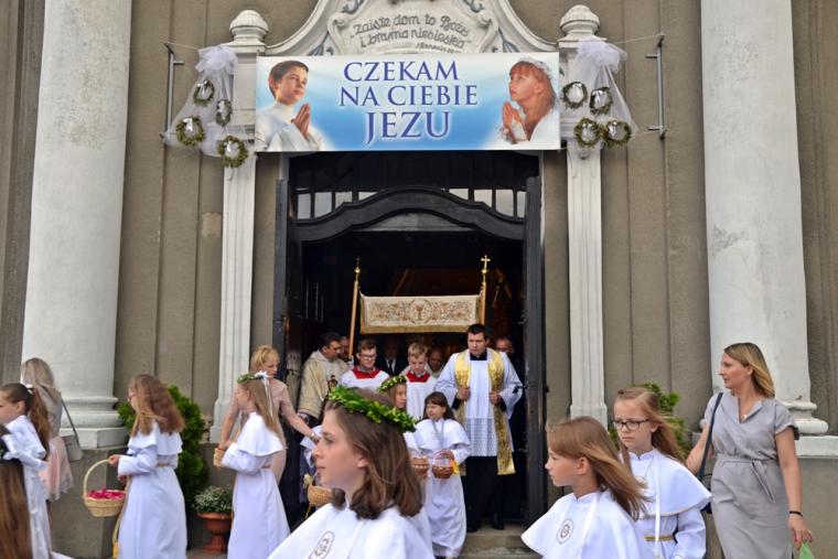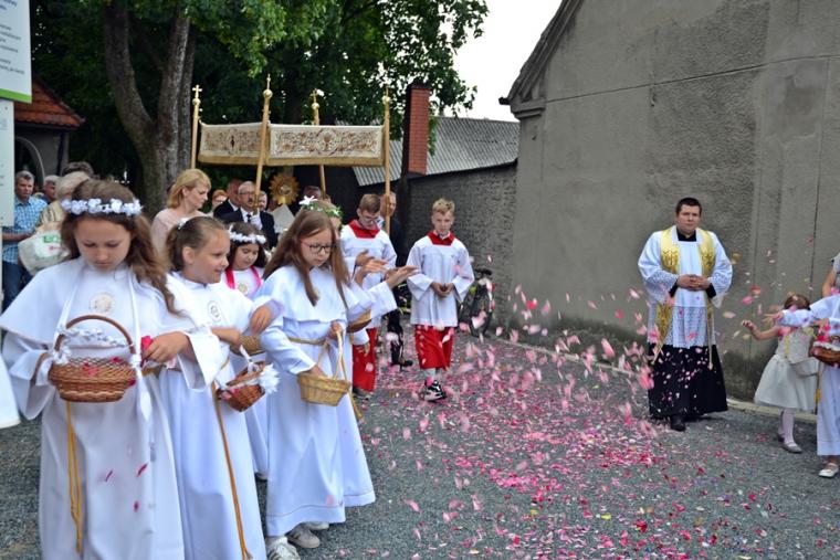 W procesji z darami dzieci przyniosły chleb wodę i wino oraz hostie. Po zakończeniu Mszy Świętej został wystawiony Najświętszy Sakrament i odmówiona Litania do Trójcy Przenajświętszej, a następnie wyruszyliśmy z procesją wokoło kościoła. Po błogosławieństwie udzielonym Najświętszym Sakramentem licznie zebranym w mikstackim wieczerniku wiernym wybrzmiała pieśń „Boże coś Polskę…”.