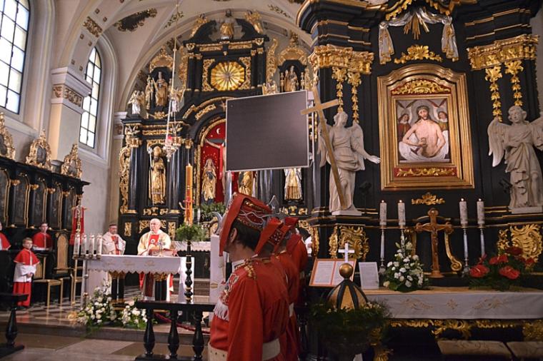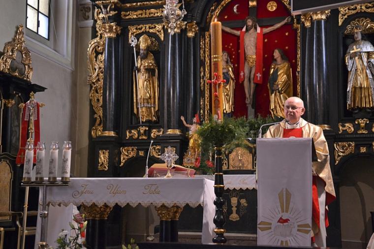 Jesteśmy szczęśliwi tu w Wieruszowie, że posiadamy ceną relikwię obraz Jezusa zranionego – Chrystusa Pięciorańskiego. Jesteśmy szczęśliwi, że pierwszy biskup diecezjalny Stanisław Napierała podniósł ten kościół – nasz kościół wieruszowski - do rangi Diecezjalnego Sanktuarium Miłosierdzia Bożego.