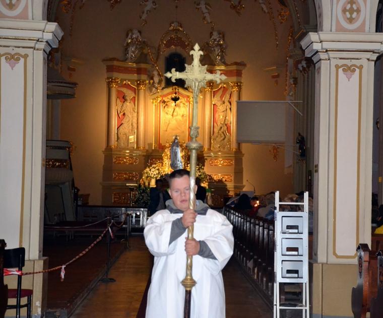 Piękny duchowo był dzień 13 października A.D. 2019 roku. Zbiegło się w nim tyle ważnych wydarzeń. Przypadł tym razem w niedzielę, dzień Pański. W tym dniu przeżywaliśmy także XIX Dzień Papieski, który tym razem przebiegał pod hasłem: „Wstańcie, chodźmy”. Wreszcie był to dzień fatimski. W niedzielny wieczór mikstacka świątynia wypełniła się wiernymi, którzy w tym szczególnym dniu przyszli na ostanie w tym roku nabożeństwo fatimskie. Nabożeństwu przewodniczył ks. kan. Krzysztof Ordziniak. Przed 102 laty miało miejsce szóste objawienie fatimskie. Przy pięknie ozdobionej kwiatami figurze Matki Bożej Fatimskiej ustawionej w środkowej nawie płonęła świeca. To od niej, po zakończeniu trzeciej tajemnicy, ministrant odpalił świeczkę i zaniósł płomień jej wiernym zebranym w kościele. Na początku ks. proboszcz przybliżył zebranym okoliczności szóstego objawienia się Fatimskiej Pani. W czasie tego objawienie Maryja powiedziała do Łucji: „chcę ci powiedzieć, żeby zbudowano tu na moją cześć kaplicę. Jestem Matką Boską Różańcową. Trzeba w dalszym ciągu codziennie odmawiać różaniec”. Zapowiedziała także zakończenie wojny. We wrześniu Maryja zapowiadała „ w październiku przybędzie również Nasz Pan, Matka Boża Bolesna i z Góry Karmelu, św. Józef z Dzieciątkiem Jezus, żeby pobłogosławić świat”. Z relacji zgromadzonych wynikało, że zobaczyli św. Józefa z Dzieciątkiem Jezus i Maryją. Święty Józef z Dzieciątkiem błogosławili świat wykonując ręką znak w kształcie krzyża. Podczas tego objawienia miał miejsce cud słońca. W jego atmosferę wprowadziły nas przytoczone przez ks. kanonika opisy prasowe z tamtego okresu. Nawiązując do słów Ewangelii, które Kościół przeznaczył na XXVIII niedzielę ks. kan. Krzysztof zachęcał zebranych, by ta modlitwa różańcowa była naszym dziękczynieniem za pontyfikat św. Jana Pawła II, za Jego przykład umiłowania Maryi, ale także za ocalenie Go podczas zamachu. W modlitwie polecaliśmy także naszą ojczyznę. Był też czas, by w cichości serca przedstawić Pani z Fatimy nasze osobiste intencje, zarówno podziękowania jak i prośby, z którymi przyszliśmy na modlitewne spotkanie.Rozważaliśmy tajemnice chwalebne różańca. Kontemplacja każdej tajemnicy zakończone było postanowieniem. W pierwszej tajemnicy rozważaliśmy Zmartwychwstanie Pana Jezusa. Postanowienie, które wybrzmiało po rozważeniu tej tajemnicy zachęcało nas do ożywienia w sobie życia nadprzyrodzonego poprzez częste korzystanie z sakramentów świętych. W drugiej tajemnicy rozważaliśmy Wniebowstąpienie Jezusa. Ważne dla naszego duchowego rozwoju postanowienie wybrzmiało po rozważaniu drugiej tajemnicy chwalebnej. Zachęcało ono do unikania najmniejszego grzechu i zgadzania się zawsze z wolą Bożą. W kolejnej tajemnicy rozważaliśmy Zesłanie Ducha Świętego. Po tej tajemnicy popłynęły do zebranych słowa zachęty do codziennej modlitwy do Ducha Świętego. Po czwartej tajemnicy wybrzmiały następujące słowa postanowienia: „ Dozwól Panno Święta, bym Cię godnie chwalił. Udziel mi mocy przeciw Twoim wrogom". Rozważając piątą tajemnicę uczestniczący w nabożeństwie usłyszeli słowa zachęty do tego, by uczynili Maryję Królową swoich serc. Następnie odmówiliśmy modlitwę Anioła z Fatimy do Trójcy Przenajświętszej, by po jej zakończeniu za krzyżem i figurą Matki Bożej ze śpiewem „ Z dalekiej Fatimy…”, z płonącymi lampionami wyruszyć w procesji wokół kościoła. Z wieży rozległo się bicie dzwonów. Był to znak, że właśnie wybiła godzina 21:00 i czas na Apel Jasnogórski, który zaśpiewaliśmy w łączności z Jasną Górą- duchową stolicą Polski. Ksiądz kanonik udzielił wszystkim błogosławieństwa. Potem otoczyliśmy figurę Fatimskiej Pani i zaśpiewaliśmy kołysankę „Zapada zmrok…”. Piękny duchowo dzień 13 października za nami…