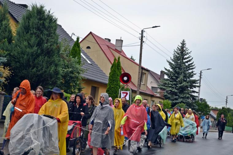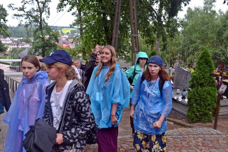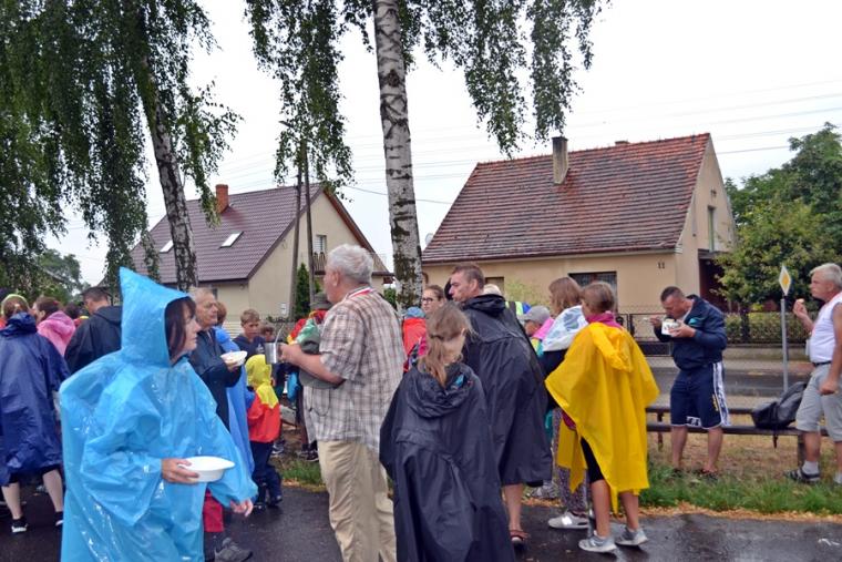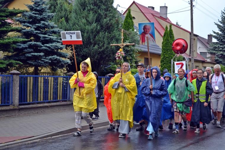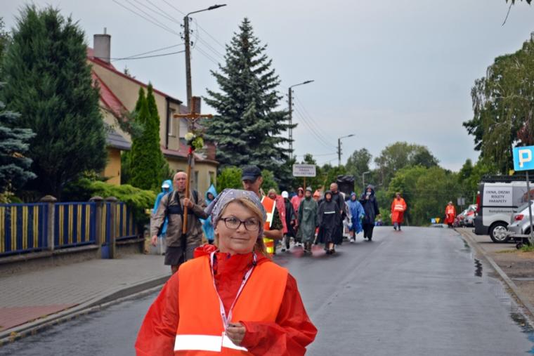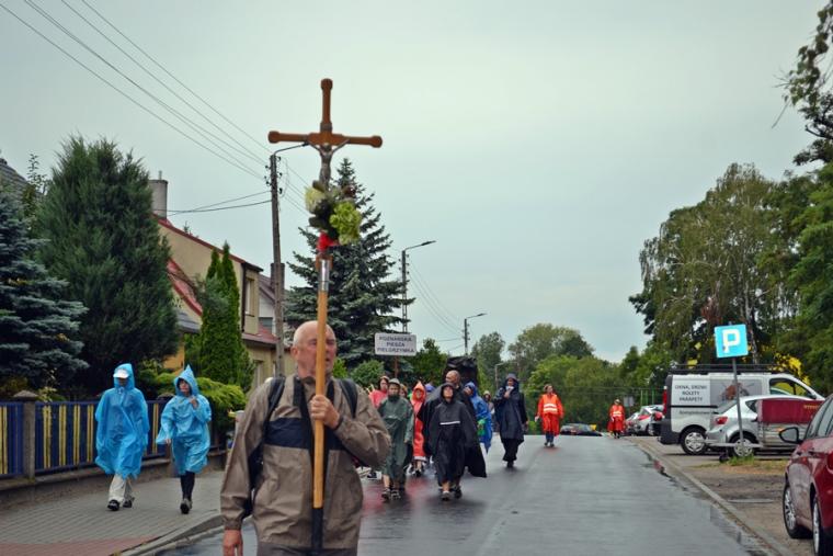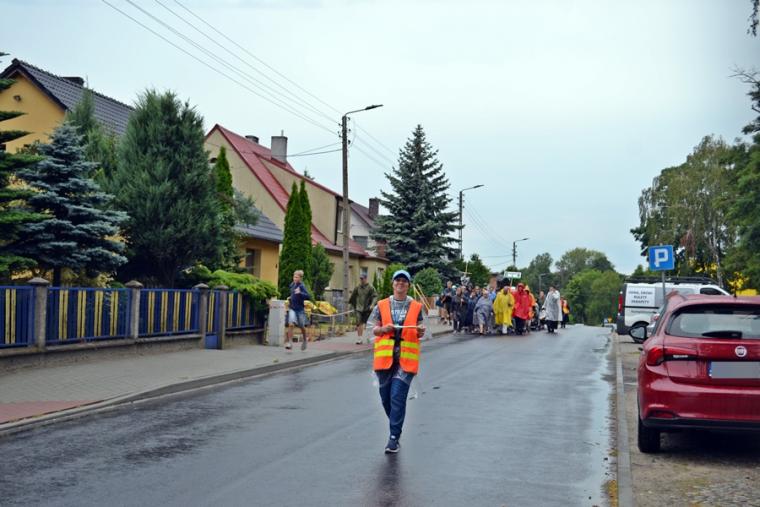 Wiele grup przeszło w ten lipcowy deszczowy dzień przez mikstacką parafię. Jak wspomniano, grupa 8 od lat przyjmowana jest na nocleg przez mieszkańców Mikstatu. Pątnicy z grupy 8 spotkali się o godz. 19:00 w kościele farnym pw. Świętej Trójcy na adoracji Najświętszego Sakramentu. Prowadzący je kapłan w słowach rozważania zwrócił uwagę na cztery etapy rozwoju wiary Piotra. Zachęcał jednocześnie zebranych w świątyni, by odpowiedzieli sobie na pytanie na jakim etapie jest ich wiara. Podczas adoracji była okazja do sakramentu pokuty i pojednania. Błogosławieństwo Najświętszym Sakramentem zakończyło modlitewną część spotkania. Z kolei grupa 9 nocowała w Komorowie. Od pięciu lat po drodze nawiedzają Diecezjalne Sanktuarium Świętego Rocha. Tu zostali powitani przez kustosza miejsca ks. kan. Krzysztofa Ordziniaka, który przybliżył im postać św. Rocha, akcentując rolę i znaczenie krzyża w Jego życiu. Podkreślił, że został on wymodlony rodziców przez wstawiennictwo Matki Bożej. Ks. kustosz zachęcał pątników, by „zaprzyjaźnili się” z tym Świętym, gdyż jest on patronem pielgrzymów. Wymowne było to spotkanie pielgrzymów ze Świętym Rochem. Przecież On też był pielgrzymem, więc doskonale rozumie ich ból, cierpienie, zmęczenie, ale jednocześnie może być dla nich wzorem wzajemnej służby, pomocy, głoszenie miłości Boga do człowieka właśnie na pielgrzymim szlaku. Następnie przy wystawionym Najświętszym Sakramencie pielgrzymi odśpiewali Koronkę do Miłosierdzia Bożego i wyruszyli w dalszą drogę do niedalekiego Komorowa, by tam nieco odpocząć. Rano obie grupy wyruszą na kolejny etap wędrówki… Taki jest pielgrzymi los. Jasna Góra coraz bliżej i już za pięć dni pątnicy staną przed tronem Matki i Królowej, by złożyć u Jej stóp swoje radości i troski, prośby i podziękowania.