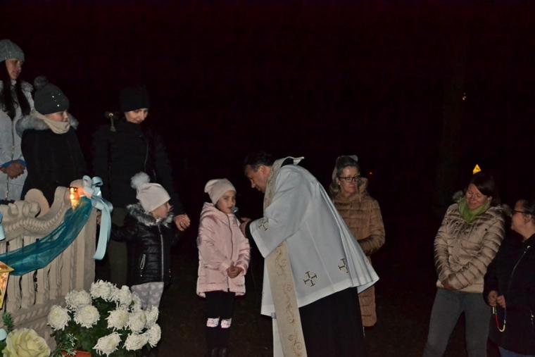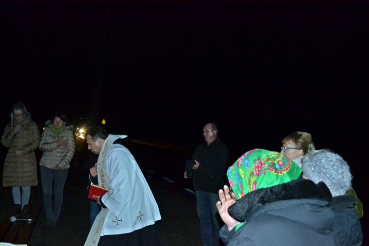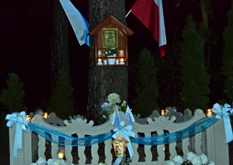 Następnie rozpoczęła się modlitwa różańcowa. Odmawialiśmy tajemnice światła. Ksiądz zachęcił, by każdy przedstawił Matce Bożej swoją intencję. Wymienił ponadto trzy intencje wspólne, dziękczynienia za przodków, którzy ustawili tę kapliczkę, za wszystkich, którzy zaangażowali się w jej odnowienie oraz za wszystkie te sprawy zebranych, które nie pozwalają nam jeszcze do końca zaufać Bogu. Podkreślił znaczenie i moc modlitwy wspólnotowej.