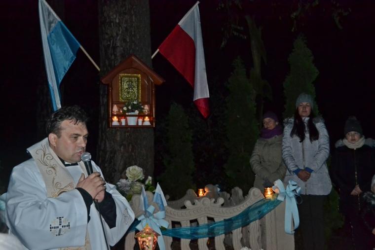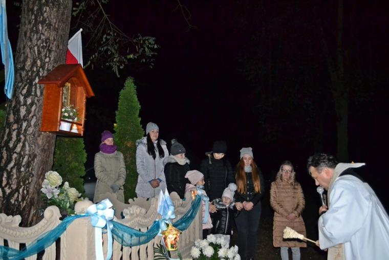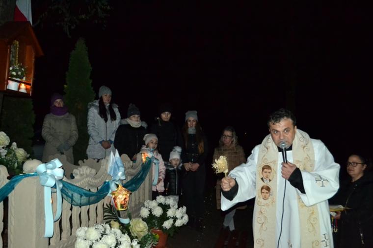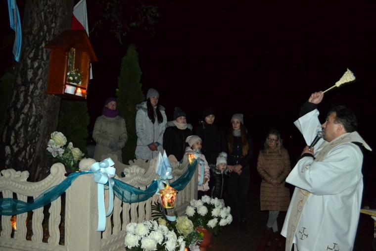 Ksiądz kan. podkreślił, że nie byłoby nas tutaj gdyby nie wiara naszych przodków, którzy ustawili tę kapliczkę i przekazali nam wiary. Jesteśmy im winni wdzięczność i modlitewną pamięć. Po specjalnej modlitwie ks. proboszcz dokonał poświęcenia odnowionej kapliczki.