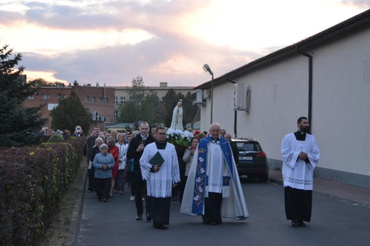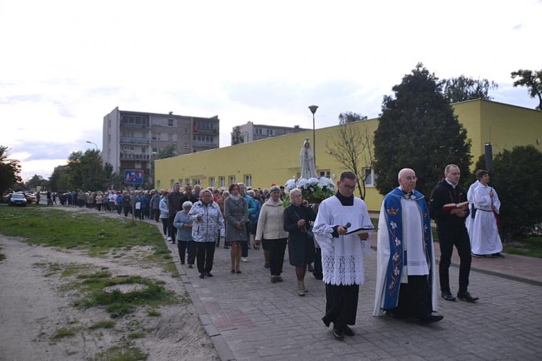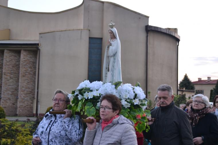 Licznie zgromadzeni wierni wyruszyli z figurą Pani Fatimskiej. Nabożeństwu z procesją różańcową przewodniczył ks. prał Henryk Orszulak, proboszcz parafii. Na zakończenie nabożeństwa wszyscy mogli uczcić relikwie pastuszków fatimskich. „Są na ziemi tej takie miejsca, do których chętnie się wraca, gdzie Matka czeka nas najlepsza i pokój duszy przywraca. To właśnie tam w Fatimie, u Maryi, to właśnie tam tak wiele dzieje się. Ileż tam łaski i miłości matczynej, to właśnie tam powracać ciągle chcę”.