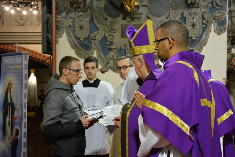Po homilii kandydaci otrzymali księgę Ewangelii, która ma oświecać ich życie. Ksiądz Biskup, zwracając się do każdego po imieniu, mówił: „Przyjmij Ewangelię Jezusa Chrystusa, Syna Bożego, abyś Go lepiej poznał i wierniej naśladował”.