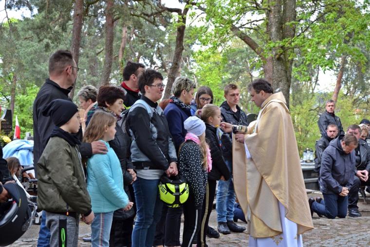 Po Eucharystii wszyscy udali się na parking. Tu ks. kanonik po odmówieniu specjalnej modlitwy dokonał poświecenia wszystkich jednośladów, zarówno małych rowerków i wielkich motorów. Po zakończeniu poświecenia kawalkada motocykli i i innych jednośladów przejechał na stadion, gdzie na uczestników Otwarcia Sezonu Motocyklowego A.D. 2019 czekało wiele atrakcji. Jednoślady poświęcone, więc z Bożym błogosławieństwem, pod opieką Świętego Rocha i Świętego Krzysztofa, w duchu odpowiedzialności za najcenniejszy dar, życie, swoje i innych użytkowników dróg można wyruszyć na szlak…