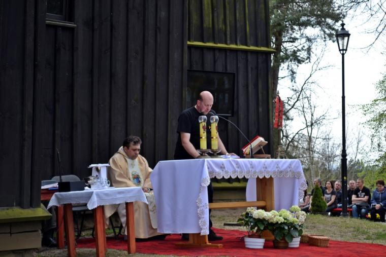 W drugiej części kaznodzieja odniósł się do słów Ewangelii. Podkreślił, że pokazuje nam ona Zmartwychwstałego Chrystusa, który przychodzi do zalęknionych uczniów i mówi: „Pokój wam”. Tego pokoju - jak kontynuował  ks. kustosz potrzebuje współczesny świat, ale potrzebny jest on także w naszych sercach. Kaznodzieja zachęcał zebranych do sięgania po Biblię, która jest najpiękniejszym listem Boga do człowieka. Zwrócił uwagę, iż wszyscy mamy być świadkami Zmartwychwstałego Chrystusa, aby jednak nim być trzeba zachowywać przykazania. Kaznodzieja powiedział: „Dekalog jest ochroną każdego z nas i bliźnich, których Bóg stawia na naszych życiowych drogach”. Zwracając uwagę na rosnącą agresję wśród użytkowników dróg, zachęcał, byśmy byli świadkami pokoju. Kończąc homilię ks. kustosz powiedział „Tego nam wszystkim życzę, abyśmy gdziekolwiek postawi nas Bóg byli świadkami Jezusa Chrystusa”.