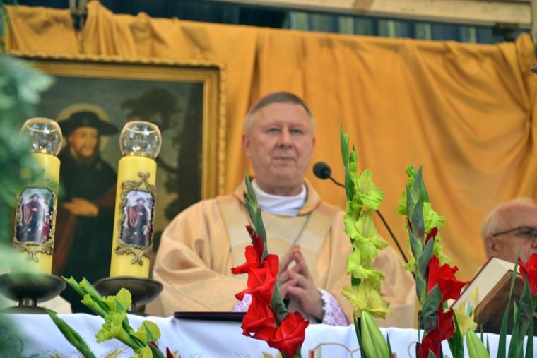 Kaznodzieja zaakcentował, że kroczenie drogą ośmiu błogosławieństw przybliża nas do Boga. Taka była droga życiowa św. Rocha, który z odwagą, służył wszystkim potrzebujący pomocy, a przez czyniony na czole znak krzyż wielu uzdrowił. Był tym, który nie tylko troszczył się o ludzi, ale i o zwierzęta, stąd jego patronat nad zwierzętami. Kaznodzieja przypomniał, że Kardynał Józef Glemp ustanowił św. Rocha patronem polskich lekarzy weterynarii. W dalszej części homilii ksiądz biskup wskazywał na moc błogosławieństwa. Powiedział: „ Błogosławić kogoś, to powierzać go Bogu, Bożej opiece, życzyć mu dobra, szczęścia. Zaś przeklinać kogoś, to życzyć mu zła”. Kaznodzieje podkreślił, że błogosławieństwo jest udzielane i w mikstackim sanktuarium. Kontynuując zawiązał do odbywającego się w Mikstacie obrzędu błogosławieństwa. Celebrans zwrócił uwagę, że Biblii zwierzęta wykorzystywane są w zbawczej dydaktyce. Przywołał fragment wiersza ks. Jana Twardowskiego mówiący o tym, że Bóg stworzył psa po to, aby uczył człowieka wierności. Ponadto kaznodzieja zwrócił uwagę, że Katechizm Kościoła Katolickiego wskazuje, że człowiek może wykorzystywać zwierzęta, tylko wtedy, gdy jest to niezbędne dla jego życia. W dalszej części homilii ks. biskup zwrócił uwagę na występując coraz częściej zjawisko humanizacji zwierząt i dehumanizacji człowieka. Przejawia się on w hasłach „ Pies to też człowiek” albo „Koń to też człowiek”. Takie humanizowanie zwierząt jest dehumanizowaniem człowieka. Bo skoro zwierzę równa się z człowiekiem, to człowieka się poniża – dodał celebrans. Kończąc homilię ksiądz biskup powiedział: „Tylko posłuszeństwo Bożym prawom może zapewnić w świecie ład i porządek, a droga ośmiu błogosławieństw przybliża świat i nasze życie do Bożego królestwa. Doskonale rozumiał to i praktykował św. Roch. Z całego serca życzę wszystkim, abyśmy to jego piękne świadectwo przenosili do codziennego życia”. Amen. Wiele cennych wskazań zostało zawartych w słowach skierowanych do wiernych zebranych przy sanktuarium. W świat popłynęło przesłanie o właściwym traktowaniu zwierząt, o właściwych relacjach między człowiekiem a zwierzęciem. Były także słowa zachęcające do naśladowania naszego Patrona w życiu codziennym. Ksiądz biskup zachęcał, by rodzice często błogosławili swoje dzieci. Błogosławcie, a nie przeklinajcie, nie złorzeczcie to przesłanie wynikające z przeżywanego odpustu ku czci apelował ksiądz biskup.