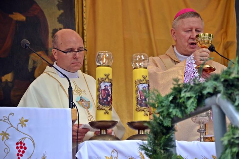 Podczas uroczystej sumy homilię wygłosił ks. bp Wiesław Szlachetka. Na początku ksiądz biskup skierował słowa powitania do ks. kustosz, przedstawicieli władz, lekarzy weterynarii, parafian i pielgrzymów. Ksiądz biskup podkreślił, że przybyliśmy na to Mikstackie Wzgórze, by prosić świętego Rocha o wstawiennictwo i uczyć się od niego miłości do Boga i bliźnich oraz szacunku dla wszystkich stworzeń. Hierarcha zachęcał zgromadzonych do skorzystania z daru odpustu.
