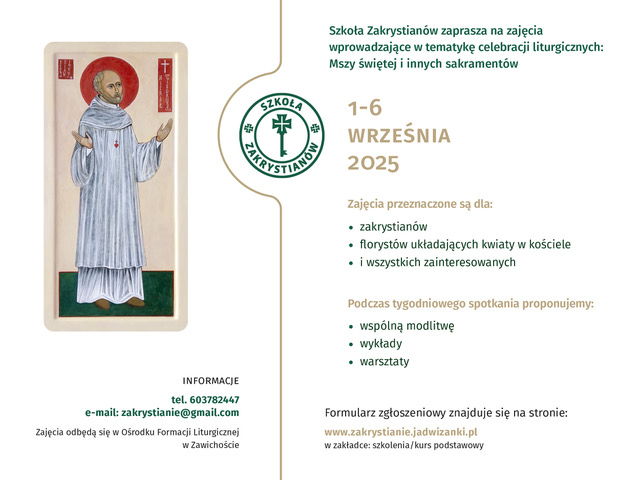 Szkoła Zakrystianów zaprasza na zajęcia wprowadzające w tematykę celebracji liturgicznych: Mszy świętej i innych sakramentów.