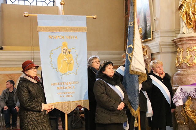 Po komunii św. w Kaplicy Cudownego Obrazu św. Józefa bp Stanisław Napierała i krajowa animatorka Wspólnot Nieustającego Różańca Świętego Urszula Strynowicz zawierzyli św. Józefowi i Matce Bożej Gietrzwałdziej koła Żywego Różańca z diecezji kaliskiej i Wspólnoty Nieustającego Różańca z całej Polski.