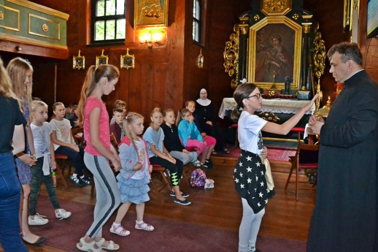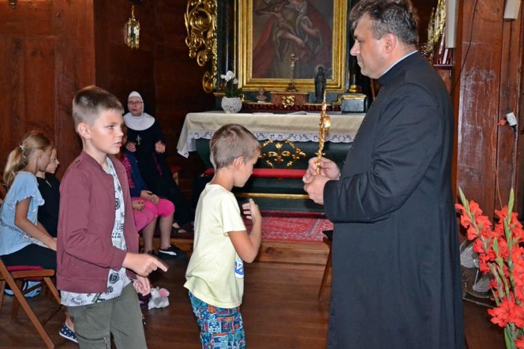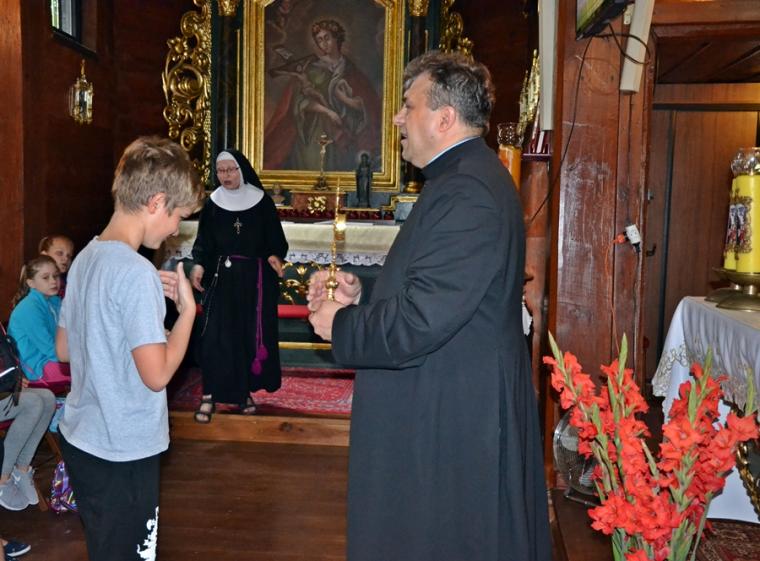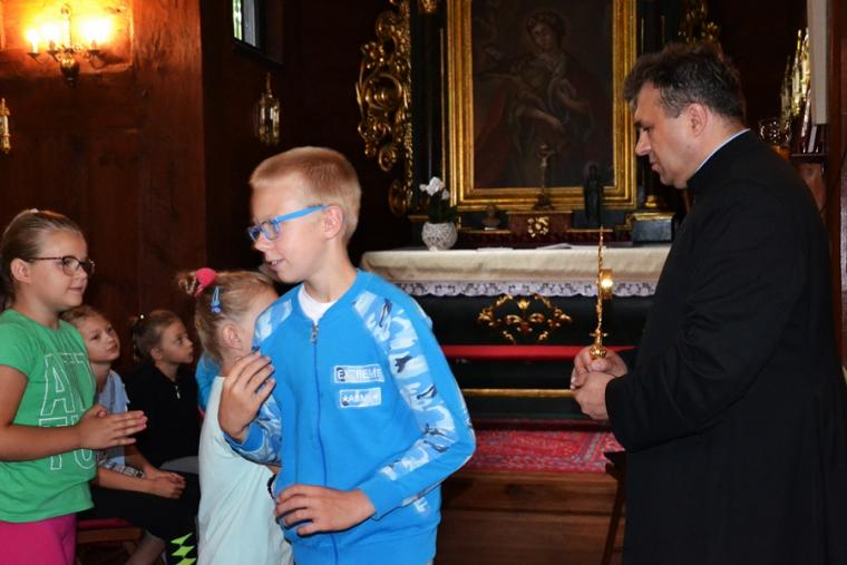 Można powiedzieć, że stało się już tradycją w mikstackiej wspólnocie, że w dniach poprzedzających uroczystości odpustowe ku czci św. Rocha z obrzędem błogosławieństwa zwierząt ks. kan. Krzysztof Ordziniak kustosz sanktuarium zaprasza młodych do szkoły. Spieszymy z wyjaśnieniem, że jest to Szkoła Rochowa, niezwykła, łącząca w sobie wiele elementów takich jak modlitwa, śpiew, nauka, zabawa, spotkania w ciekawymi ludźmi. Trzeba dodać, że czyni to chyba w sposób dla młodych atrakcyjny skoro mimo wakacji chętnie do niej przychodzą. Pierwszy dzień w Rochowej Szkole przebiegał pod hasłem: „Chrzest jako brama Kościoła”. Podczas spotkania ks. kan. Krzysztof Ordziniak poprowadził modlitwę nowennową z dziećmi oraz zapoznał je z pierwszym okresem życia patrona sanktuarium. Zwrócił uwagę na słowa testamentu duchowego pozostawionego mu przez ojca. Był także czas na rozmowę z dziećmi o dziedzictwie, tym należącym do nich, do ich rodzin. Ponadto ks. kan. Krzysztof wyjaśnił ideę spotkań w Rochowej Szkole w tym wyjątkowym dla mikstackiej wspólnoty parafialnej czasie. Piękna pogoda zachęcała do zabawy na świeżym powietrzu. Ich organizacją zajęła się s. Małgorzata. Jak w prawdziwej szkole były i zadania domowe. Ksiądz kustosz poprosił dzieci, by wypisały prośby i podziękowania do modlitwy nowennowej.